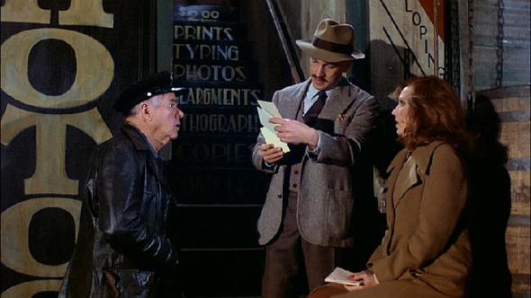 That role in “The Big Sleep” (1946) is for me one of his best and the epitome of an Elisha Cook character. It’s a small role but it’s unforgettable. He plays Harry Jones, a small timer who’s trying to sell information that bad girl Agnes has to Philip Marlowe. Jonesy is in love with Agnes, of course. Before he can get to Marlowe, he’s approached by Canino, one of Eddie Mars’ men, who is looking for Agnes. Canino pulls a gun on Jonesy and demands he tell him where Agnes is. Jonesy, no hero, makes with the information. “I guess I’m yellow all right”. “You just got good sense…You’re nervous. Maybe you need a drink,” Canino responds. Then Canino pours Jonesy a drink and insists he drink it down. Jonesy knows it’s poison but he drinks it anyway and laughs as he does. “What’s funny, “ Canino asks. “Nothing’s funny,” Jonesy answers, confident in the fact that he’s saved his lady love by giving Canino the wrong address. Beautiful!