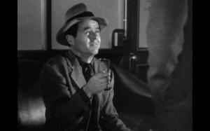 In 1940, he appeared in what is widely considered to be the first film noir, “Stranger on the Third Floor”, playing a man wrongly convicted of murder. In 1941, he followed that up with a role in what many consider to be the best film noir, “The Maltese Falcon” (1941). Elisha will likely be best remembered for his role as the gunsel, bodyguard to Sidney Greenstreet’s Kasper Gutman. His Wilmer Cook is typical of Elisha’s characters in the 40’s: a small man trying to pretend to be more than what he is. He itches to put a slug in Bogie’s Sam Spade but Bogie laughs at him, slaps him around, and eventually chooses him as the fall guy for the various murders that have been committed. Elisha’s barely controlled anger is palpable.